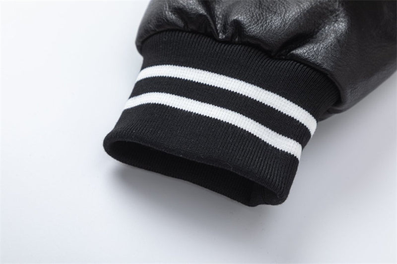 This iconic outerwear piece reinterprets the classic bomber jacket with bold cut-out sleeves and a stand-up collar. The sleeves feature premium wool and leather construction, lined with polyester for breathability and resistance to water and sweat. Side pockets enhance functionality without compromising the sleek racing-inspired design. Tailored for the sophisticated man, this jacket delivers timeless style and all-season comfort, perfect for refined casual wear throughout the year.